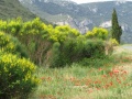 Troisième jour : de Tuchan à Duilhac sous Peyrepertuse. Beaux paysages, végétation en pleine floraison. |  Arbousier. |  On avance vers le Grau de Padern, espèce de défilé entre deux parois calcaires escarpées. |  Dans Padern, pause et réhydratation dans le Café des sports ! On passe un bon moment à parler avec la patronne, qui est prête à nous présenter à tout le village. |