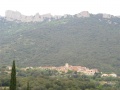 Depuis la château, vue sur le village. |  Onzième et avant-dernière étape, de Montségur à Roquefixade. On est dans le pays d'Olmes. C'est très vert. |  Encore un peu de pluie, pour ne pas perdre l'habitude. Bien que, sur l'ensemble de la randonnée, nous n'avons pas souvent été mouillés. Et même ce temps plutôt frais était bien agréable pour la marche. |  Roquefixade : encore une visite. |