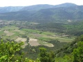 Vue sur la vallée de Fenouillèdes. On peut apercevoir Caudiès. Et en face : le massif où nous allons, vers Aigues-Bonnes. |  La vallée d'Aigue-Bonnes ; notre gite est tout dans le fond, la petite tache blanche vers la droite. |  Sixième jour : on commence par la visite du château de Puilaurens. Encore une fois, il faut grimper sec pour atteindre les ruines. |  L'entrée du château, bien conservé. |