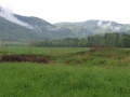 Le gite d'étape de Camps sur Agly, une très vieille ferme. Dans la salle à manger, une énorme cheminée, et le puits à l'intérieur de la pièce. Excellent accueil, excellent repas (comme pratiquement dans tous les hébergements). |  La partie gite de la ferme est installée dans l'ancienne grange. La lampe de chevet de notre chambre nous paraît d'époque, aussi. |  Cinquième jour, vue du gite avant le départ vers Aigues-Bonnes. |  Tôt le matin, on s'approche du Pech du Bugarach, encore couronné de brume. Encore une belle montée, pour passer sous le sommet au niveau du col de Péchines. A propos, il paraît que le Bugarach est un lieu dégageant des "ondes" spéciales. En effet, il a fait soleil durant toute la matinée. |