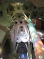 Second bâtiment extraordinaire : l'immeuble d'habitations appelé la Maison Batllo (le propriétaire qui l'a fait rénover par Gaudi). Déjà de l'extérieur cela vaut la peine. Puis la visite démarre. |  Derrière la porte d'entrée, un escalier. Là aussi, plus aucune ligne droite, tout est mouvement, presque vivant. |  Une niche avec cheminée. |  Portes de placards, de pièces. Le bois est superbe, les vitraux aussi. |