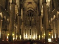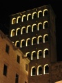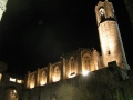 Vue de nuit de l'ancien palais des comtes de Barcelone. Moyen-âge également. |  Rue du vieux Barrio gotico. Bizarre, il n'y a personne. En général, les rues (et les nombreux bistrots) sont remplis de monde jusque tard dans la nuit. |  La cathédrale. |  Pour finir ce petit tour, une vue du Palais de la musique catalane, construit également début 20ème siècle. Encore un délire de formes et de couleurs. |