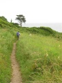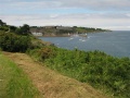 On a eu des crêpes, des crêpes et encore des crêpes. Mais bon, avec un cidre bien frais, pourquoi pas ? |  C'est le départ depuis le port du Palais. Petit vent. Cap au nord. |  Sentier vers la pointe de Taillefer. Vert en haut. |  Bleu en bas.