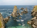 Troisème jour, toujours le beau temps. Nouveau changement de direction, on va longer le bord sud de Belle Ile en direction plein est. Une jolie plage parmi d'autres : le Vazen, peut-être ? |  C'est la partie où les falaises sont les plus élevées. Les reliefs sont impressionnants. |  Cormorans couvant. |  Le sentier suit scrupuleusement les découpes rocheuses, nous aussi. |