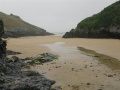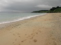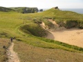 Qui ne nous quittera plus, quasiment jusqu'au retour au Palais. |  C'est beau aussi, sous les nuages. |  Versant nord ; finies les falaises impressionnantes. C'est plat (enfin, presque), beaucoup plus de sable. |  La Plage des Grands Sables, à marée montante. |