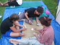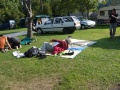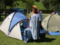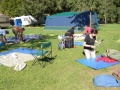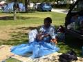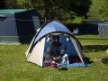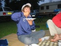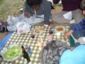 |  Simon et sa boule magique. |  Le dernier soir, froid, on mange sous l'auvent, |  Mais les autres jours : repas sur l'herbe ! |
