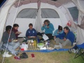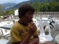 Une bonne platée de spaghettis, rien de tel pour remonter le moral. |  Quelle semaine ! |  Et hop, un petit coup de Chartreuse (jaune, celle-ci). |  Samedi : lever de camp, il faudra qu'on revienne. |