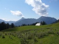 Le soir, essai d'agrandissement du logement. Esthétiquement, c'est pas une réussite. |  Mercredi, départ vers le Petit Som depuis Le Habert. |  On repasse par le col de la Ruchère, mais cette fois-ci par le versant nord. |  Au-dessus du pas du Loup, et avant le col de Léchaud. |