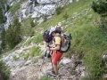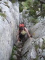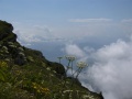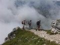 Des nuages épais montent. |  Passages pentus bien équipés. |  En haut c'est très beau. |  Juste sous le sommet, un coin de ciel bleu. |