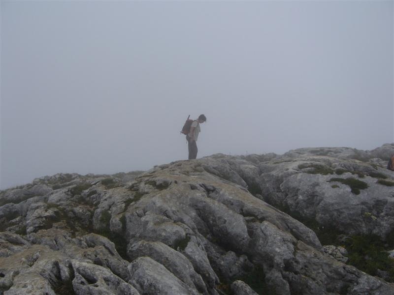 Sommet dans le brouillard.