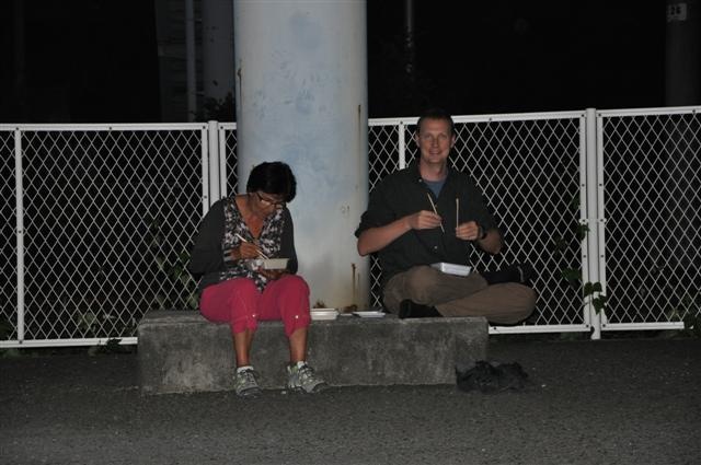 Kotohira : étape de pélerins très nombreux sur le chemin des 88 temples de l'île de Shikoku. Il y a quelques hotels énormes et quelques ryokan. Mais dès 19 heures, la petite bourgade est déserte. Le premier soir, nous trouvons un fast-food local et allons manger dans le parking de la gare. C'était très bon !