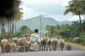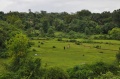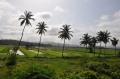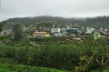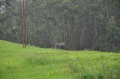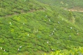 En face de notre gîte. Le premier jour il ne pleut pas beaucoup. |  Chaque jour les cueilleuses de thé sont dans les jardins. Elles coupent les premières feuilles tous les dix jours. Les arbustes sont taillés tous les cinq ans. |  |  Dans le coin, il y a pas mal d'animaux sauvages ; on a la chance d'apercevoir un éléphant, en lisière de forêt. |