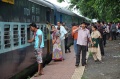 Le marché de Panaji (Panjim). |  Idem. |  Et puis, départ en train de nouveau, pour la dernière étape. Nous prenons le Mandavi Express (Margao - Mumbai CST) ; 14 heures. Nous voyageons en 2nd sleeper, des wagons à fenêtres ouvertes, 6 personnes par compartiment + 2 côté couloir. Au début c'est respecté, puis de plus en plus de personnes montent, et s'entassent où ils peuvent. |  Campagne très verte et cultivée ; c'est la côte de Malabar, fertile. |