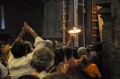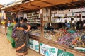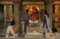 Sur le conseil d'un brahmane, nous prenons un guide, il s'avère qu'il est muet. Je n'aurais jamais pensé qu'un guide muet puisse expliquer tant de choses ; notre guide mimant Hanuman le dieu-singe ! |  Le hall d'entrée, et ses nombreux marchands du temple. |