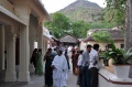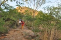 Salle des cérémonies, dans l'ashram. Il y a des cultes, des moments de méditation, des lectures des Veda. En sanskrit. |  Comme d'autres pèlerins, dont de nombreux sadhus, nous faisons le tour du mont sacré Arunachala. 14 kilomètres, 38°. Mais il y régulièrement de l'ombre, et le rythme est lent. |  |  Le soir, des sentiers permettent de se promener dans le massif de l'ancien volcan. |