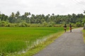Après Cochin, nous partons pour un séjour de 3 jours chez Sunil, à Vaikom. "Village", comme ils disent. Mais c'est aux dimensions indiennes. |  Passage au temple, où il y a une cérémonie. |  Dans le temple. |  Promenade dans la campagne entourant le village. L'habitat est dispersé, au milieu de plantations, de rizières, de palmiers. |