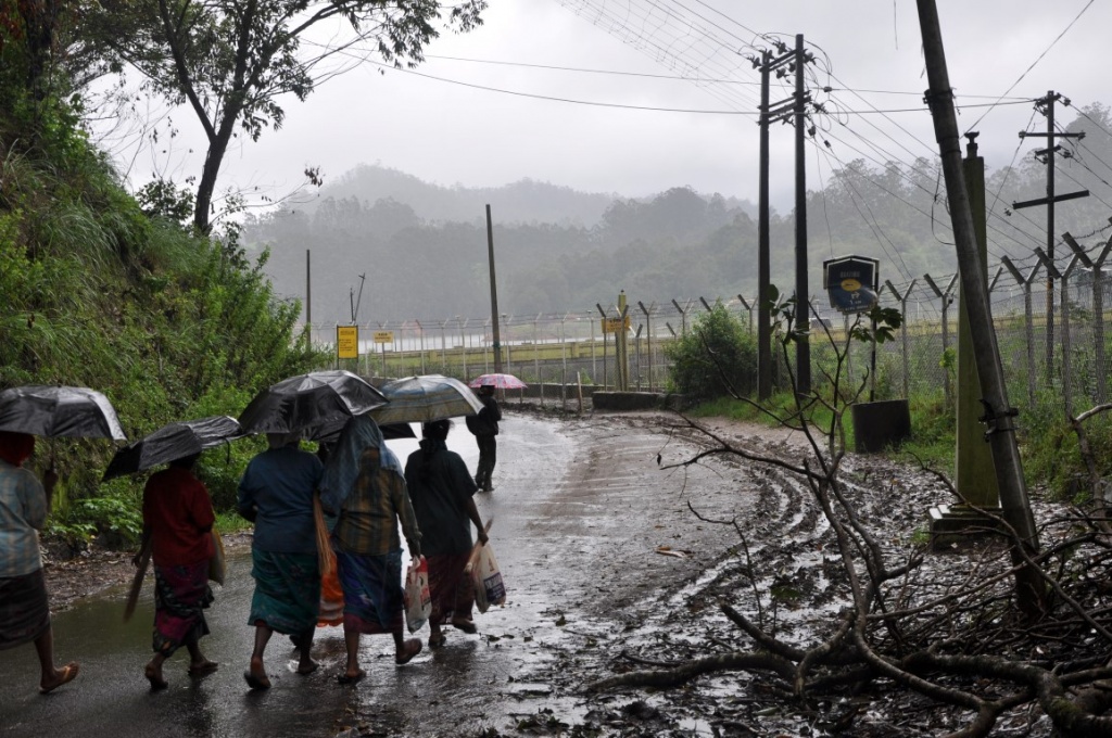 Le soir les cueilleuses de thé rentrent, sous la pluie.