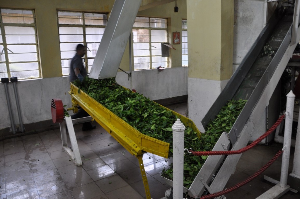 Nous visitons une tea factory (production faible, c'est une vitrine pour les touristes) ; elle appartient néanmoins à TATA, l'une des familles les plus riches d'Inde. TATA possède toutes les plantations du coin, les usines de production du thé, les 20 000 employés qui vivent dans les villages TATA...