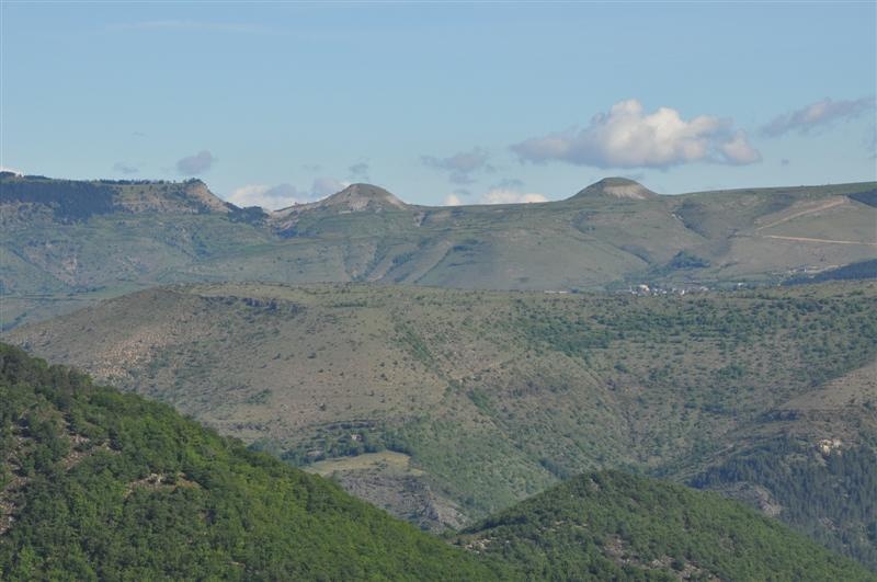 Loin au nord-ouest, des mamelons calcaires caractéristiques des Causses.