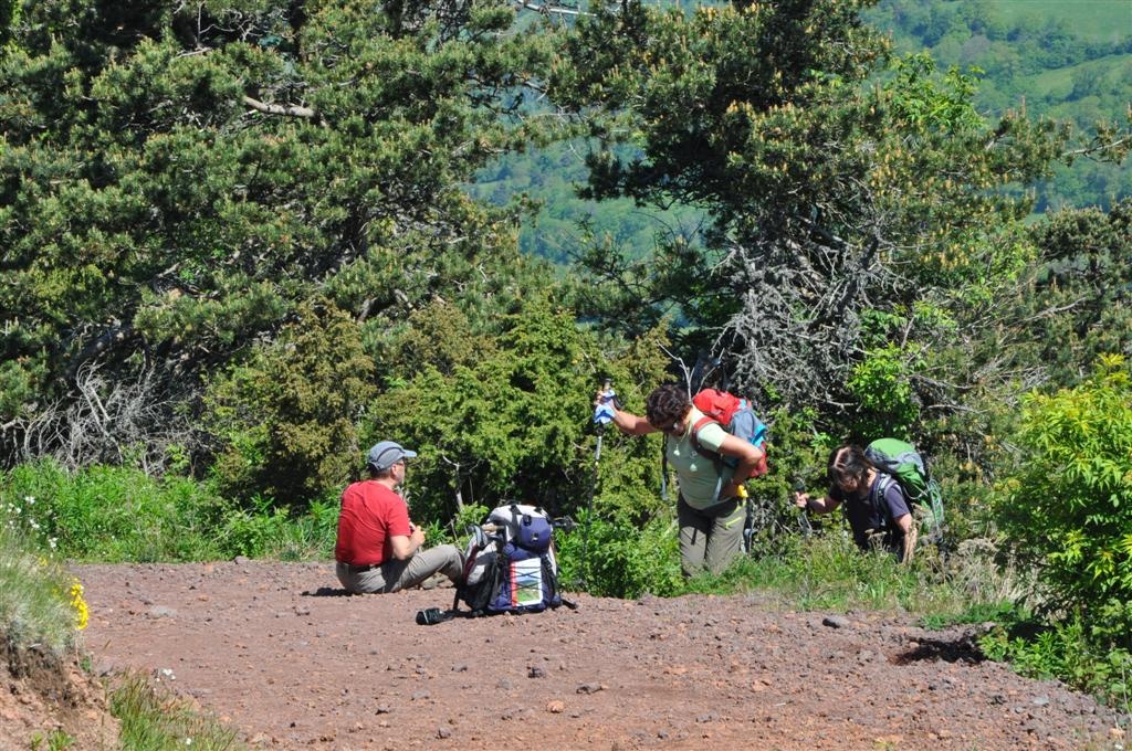 Un beau raidillon essouffle mais mène au sommet de La Durande, gros massif de lave où on trouve des jolies torsades et autres formes "pâtissières".