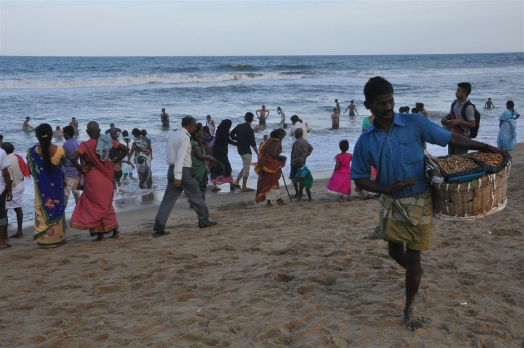 Comme pratiquement chaque fin de voyage, la journée s'achève, à Chennai, par un tour à Marina beach. Toujours la même atmosphère calme, malgré le monde présent ; la plage est très longue, et large aussi.