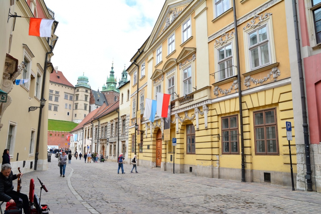 La rue Kanoniksa, et au fond le château perché sur la colline de Wawel.