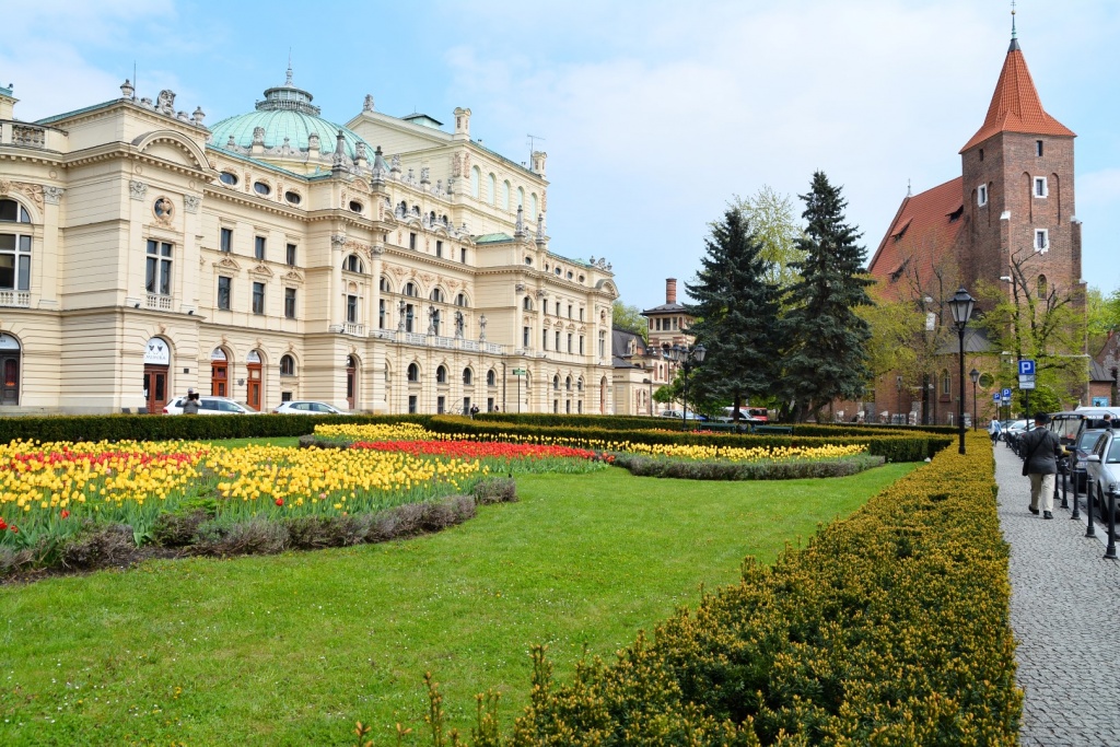 Ancienne capitale, ville typique d'Europe centrale, beaucoup d'histoire qu'on retrouve dans les immeubles. Ici c'est le théâtre Slowacki. Mais beaucoup d'époques sont visibles, du médiéval gothique, renaissance, baroque, 19ème, et aussi l'architecture soviétique. Certains quartiers sont très rénovés, d'autres sont encore dans leur jus.