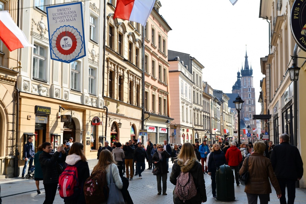 Une rue principale du centre historique ; de chaque côté des commerces et des galeries qui conduisent à des cours intérieures.
