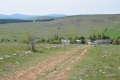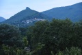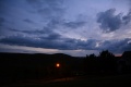 |  Vue depuis la chambre, à la tombée de la nuit. |  On avoue, on a un peu triché : le propriétaire de l'excellent Gîte du plateau des fées nous a avancé de 6 kilomètres, dans un vieux Renault Espace I des années 80, relooké façon Tupolev. Du coup on évite aussi 300 mètres de dénivelée ce qui n'est pas pour nous déplaire. |  Et l'on se retrouve sur le Causse de Blandas, diverticule Est du grand Causse du Larzac. |