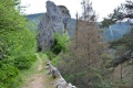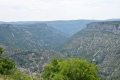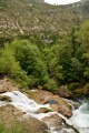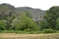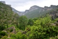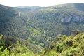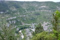 Ste Enimie, tout au fond des gorges. |  Heureusement, la forêt filtre un peu les rayons du soleil. |  Une dernière vue sur le Tarn. |  Arrivée sur le Causse Méjan, qu'on traverse du nord au sud. |