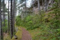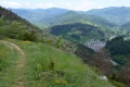 Arrivée au col de Serreyrede, on a une jolie vue sur cette fameuse vallée du Bonheur. |  Après le col, descente vers l'Espérou via la Grande Draille du Languedoc. |  Troisième nuit, mémorable, dans un gîte à l'Espérou. La vieille bétaillère rouillée signale ce gîte, dont tout le reste est à l'avenant. |  L'Espérou dans son ensemble nous paraît d'ailleurs un peu, comment dire, façon Twin Peaks... |