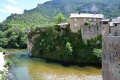 Au fond. Le vieux pont sur la Vis. |  |  Une balade le long de la Vis, avant de rejoindre le gîte pour la 5ème nuitée. |  Et le lendemain matin : pluie, grondements de tonnerre dès 9 heures du matin. On nous conseille de ne pas monter sur les crêtes (une ferme a été foudroyée et incendiée, trois semaines plus tôt, sur le circuit, et nous n'envisageons pas de subir le même sort). |