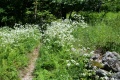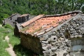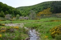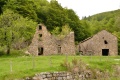On remonte la petite vallée du Bonheur (le nom de la rivière). Jolie vallée aux prés fleuris. |  La Baraque vieille. |  Au fond de la vallée, les ruines de Notre Dame de Banahuc. A l'écart du chemin et sans aucune indication, nous avons eu un peu de mal à trouver ce lieu. |  Hospice pour les voyageurs, fondé en 1002, cet ensemble a fonctionné durant tout le moyen-âge. |