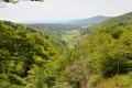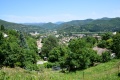 |  Meyrueis, au fond de la vallée. |  Lendemain matin, on change de paysage : on quitte la Lozère pour entrer dans le Gard et dans le parc national des Cévennes. |  |