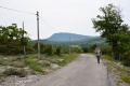 |  |  Une montée un peu rude, sur le goudron, alors que le ciel s'épaissit en masse grisailleuse. Il fait chaud et lourd. |  |