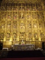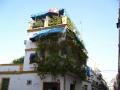 ![]() Le décor derrière le maître autel (pas le maître d'hotel), délirant : 25 mètres de hauteur de décors sculptés dans le bois, recouvert d'or. | ![]() Un bout de la cathédrale, avec à gauche le clocher. Mais là on voit qu'avant c'était une mosquée : la cour des ablutions, et le minaret devenu la Giralda. Les chrétiens, après la reconquête des territoires musulmans, ont souvent transformé (et notablement enlaidi) les anciens bâtiments maures. | ![]() Une ruelle d'un ancien quartier de Séville, il y en a plein comme cela, et c'est animé du matin au soir ET du soir au matin. Seul moment de calme : l'heure de la sieste. | ![]() Encore un balcon sur lequel on aimerait passer un moment. |