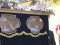 ![]() Ils sont trente là dessous, à marcher en rythme et à transpirer. PS : visez la minette à gauche ; elle surveille son copain qui est sous le dai. | ![]() Le premier rang y voit quelque chose, les autres suivent. | ![]() La Plaza Espagna, c'est vaste, plein de touristes et donc de vendeurs, et pas tellement beau. | ![]() Là, c'est à Cordoue. Nous logions dans une vieille maison andalouse, avec patio fleuri, colonnades, et des propriétaires aux petits soins... Le petit déj dans ce décor, quel bonheur ! |