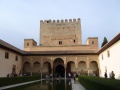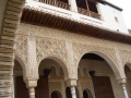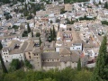 ![]() Visite de l'Alhambra. On commence par le Généralife, sorte de résidence d'été avec des jardins superbes. | ![]() Du côté almohade (c'est une des dynasties musulmanes qui ont gouverné l'Andalousie, après les almoravides et avant les nasrides). Ce sont les nasrides qui, en dernier, se sont fait battre par les rois catholiques (fin du 15ème siècle) et sont retournés en Afrique du Nord. | ![]() La ville, vue du haut des remparts de l'Alhambra. | ![]() Le joyau de l'Alhambra : les palais nasrides. |