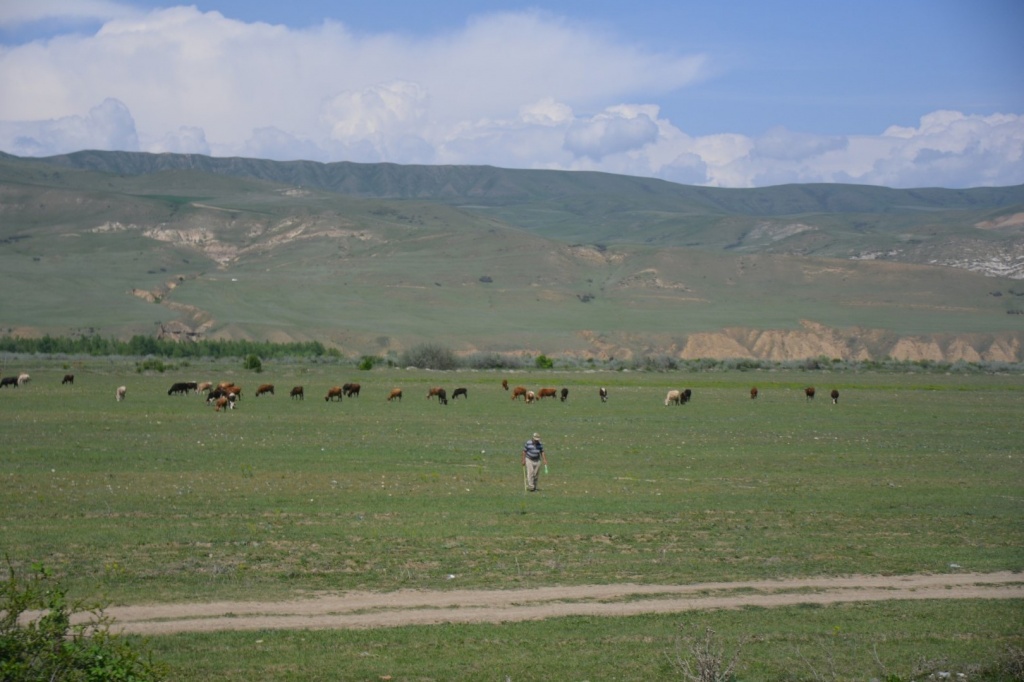 Poursuite de la descente, en altitude et en latitude. On voit des nombreux troupeaux, et aussi des plantations : arbres fruitiers, vignes. Dans les villages, chaque maison a son jardin et des treilles de vignes jusque sur le bord de la route.
