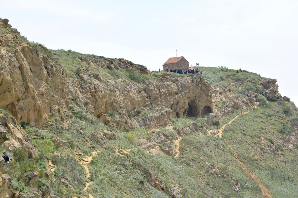 Sur ce sentier nous marchons sur la frontière entre Géorgie et Azerbaïdjan. Des incidents ont régulièrement lieu entre militaires, des deux côtés, parfois l'accès au site est interdit. Notre guide paraît inquiète. Des soldats kalachnikovés patrouillent sur la crête, et nous avons interdiction de prendre des photos.