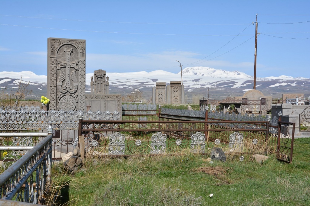 Le cimetière est situé en haut du village et la vue sur les monts environnants est belle.
