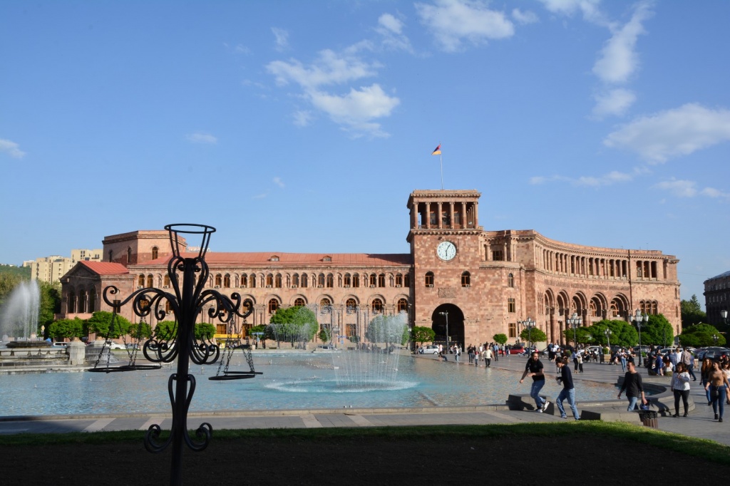 Erevan n'est la capitale que depuis 1918 (plusieurs cités ont été capitale, au cours du temps). C'est une ville récente, mais l'architecte, Tamanian, a su s'écarter du lourdingue style soviétique. La Place de la République est le coeur de la ville.