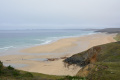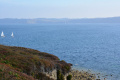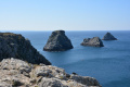 |  Entre le niveau de la mer et le plateau, c'est un peu raide. |  |  Au loin vers le sud-ouest, par-delà la baie de Douarnenez, c'est la Pointe du Raz. |