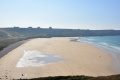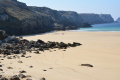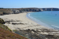 Encore une belle journée ce dimanche 15 septembre. Dès le départ le sentier surplombe l'Anse de Camaret. |  Il suit exactement la côte très découpée et les trois Pointes : du Grand Goui, du Toulinguet et de Pen-Hir (avec ses Tas de Pois). |  |  Plage de l'anse de Pen Hoat. |