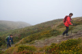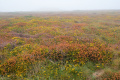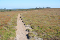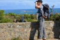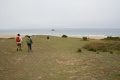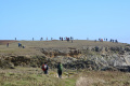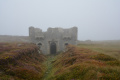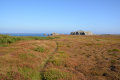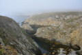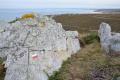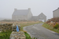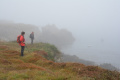 Parfois un ou deux mini-bus déversent un lot de touristes ; mais la plupart du temps, en-dehors des chemins carrossables, nous sommes seuls ou presque. |  |  Lendemain ; la marche se déroule toute la journée dans la brume et un petit crachin. |  Circuit prévu : la côte Nord-Est, de Corn Héré jusqu'au phare du Stiff. Et retour, bien entendu. |