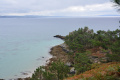 Au loin un grain se forme. On y échappera de justesse. |  |  Le laurier-tin, omniprésent dans les haies bordant chemins et propriétés, qui sent tellement bon. |  Dernier coup d’œil avant prendre la route vers Moëlan-sur-Mer près de Quimperlé. Plus exactement, à Kerampelan où nous sommes hébergés chez des amis. |
