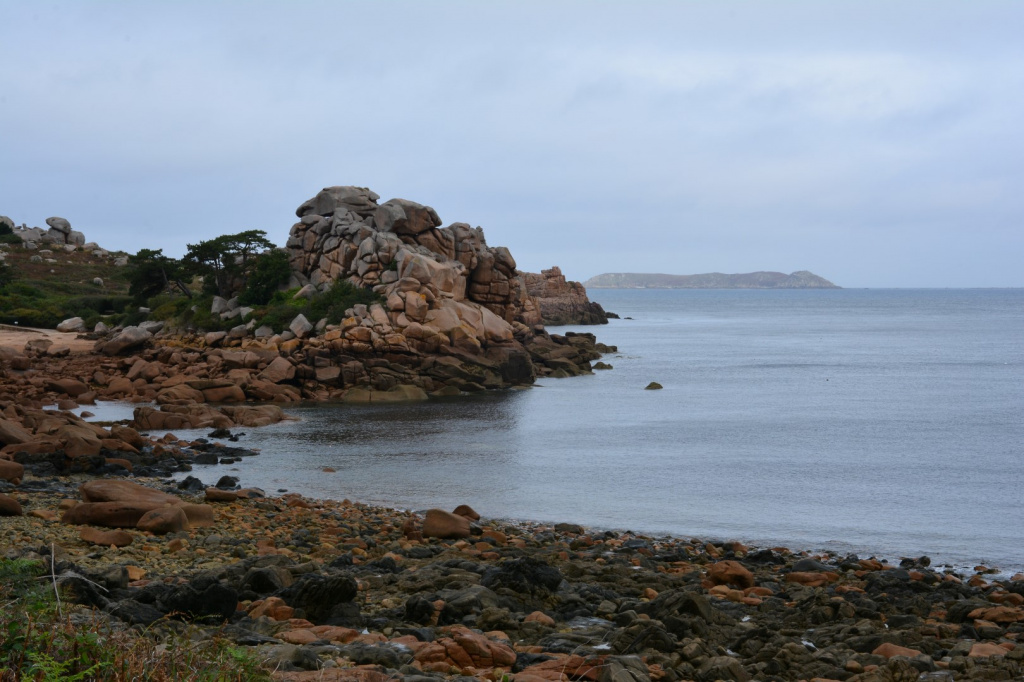 Mercredi 11 sept. Toujours la Côte de granite rose, toujours le GR 34, du côté de Perros-Guirec. Exactement : tour de la pointe de Ploumanac'h et l'Ile Renote (post-it PUIS LA sur la carte).
