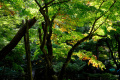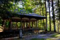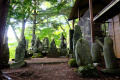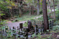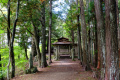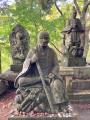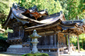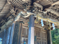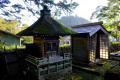 Du temple, on peut voir, au loin entre les arbres, le mont Ontake-san, volcan actif culminant à 3000m. Second volcan du Japon, en altitude, après le Fuji-san. |  |  |  |