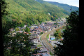 2 heures 30 de bus pour monter à Takayama (1150 m d'altitude), sous la pluie et le brouillard. |  |  Notre maison se trouve en bordure de la ville, on traverse un vieux pont et on monte sur la colline. |  Première chose à faire : les courses. |