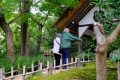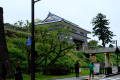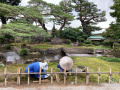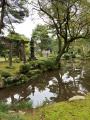 |  Elle a même son jardin traditionnel, avec rocher, gravier, lanterne, gazon taillé aux ciseaux... Le tout sur 4 mètres-carrés. |  Une des entrées du château, que nous n'avons pas visité. |  En revanche nous avons parcouru le jardin Kenroku-en, attenant au château et qui était, à sa création au 17ème siècle, le jardin privé des seigneurs féodaux. |